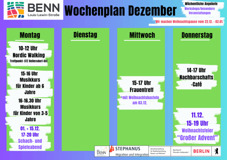Zum Jahresende begrüßt euch unser Haus nicht nur mit den üblichen gemütlichen Veranstaltungen, sondern auch mit spannenden Aktivitäten und Weihnachtsfeiern. Der Musikkurs für Kinder bietet nun zwei Altersgruppen mit entsprechend maßgeschneiderten Lernaktivitäten an, und wir werden einige Weihnachtslieder lernen. Bei…